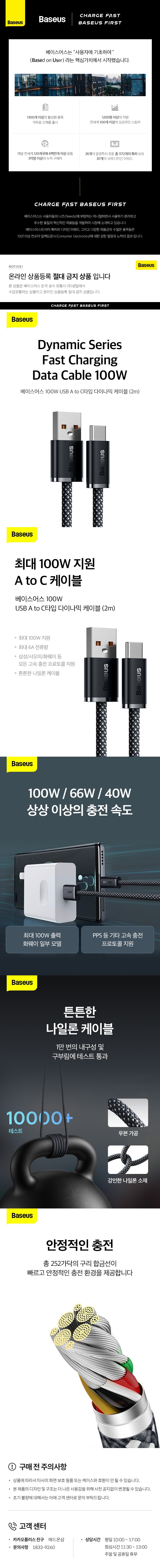 베이스어스 다이나믹 시리즈 고속 충전 데이터 케이블 A to C 100W (2m) / CALD000716